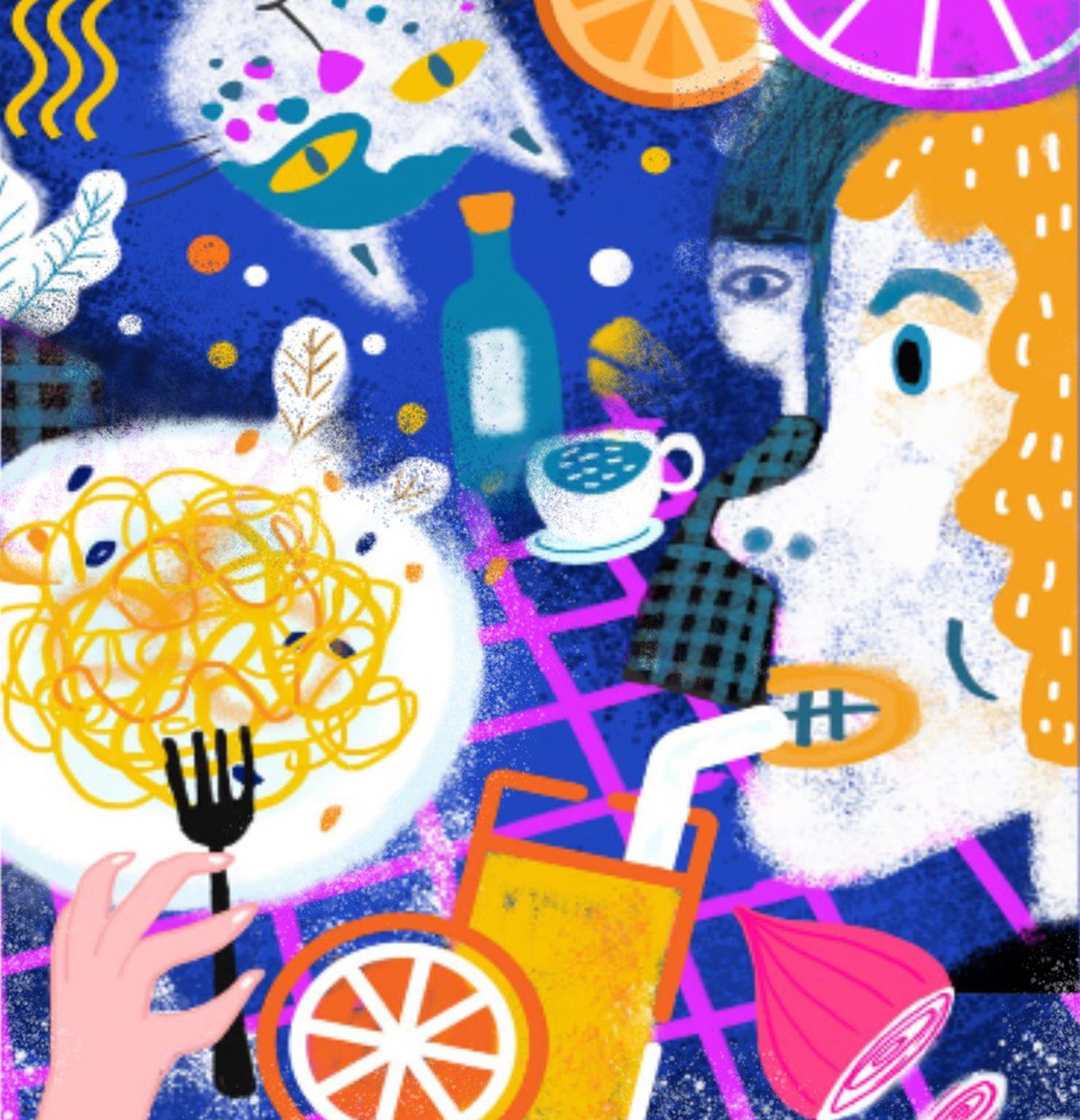 Dinner Party, Mixed Media, 8×8 inch